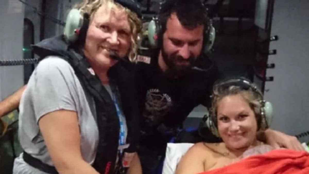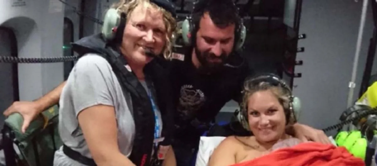 The South West Ambulance Service asked the HM Coastguard to come to the rescue and to fly Alicia and her husband, Sandy over to the mainland to a hospital where Alicia could safely give birth.