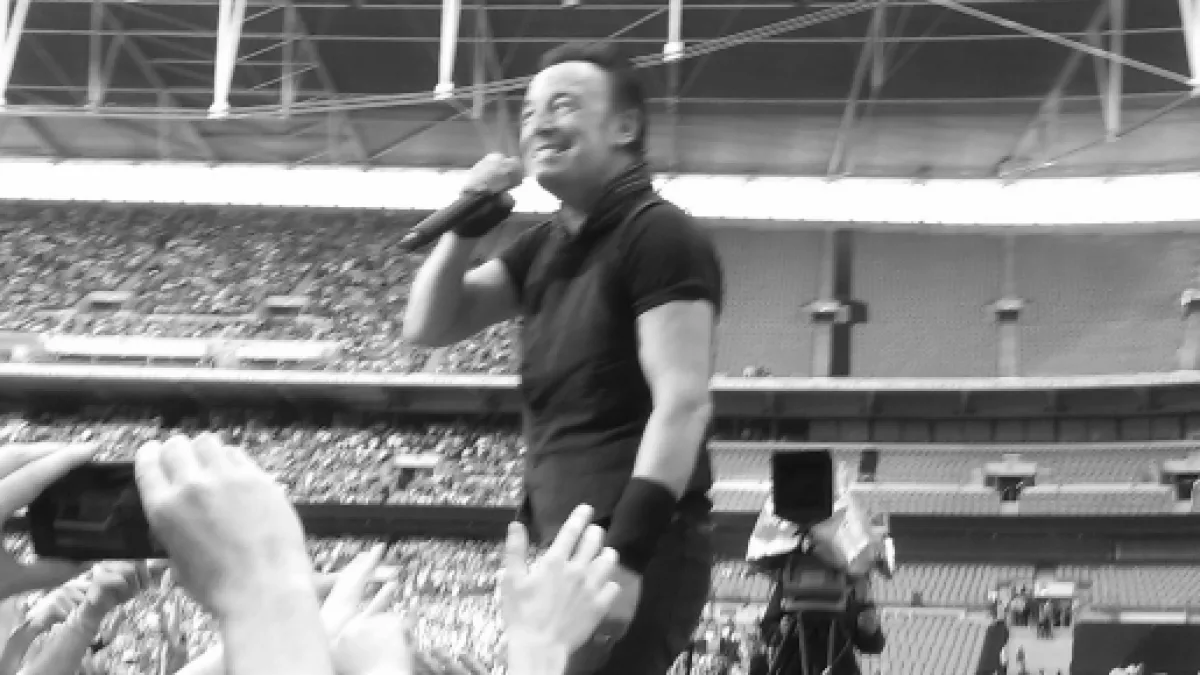 On Sunday night Bruce Springsteen showed Wembley Stadium that at 66 years old there isn't just life left in the old dog -- there's new tricks too. Bruce walked on stage, alone, in front of over 68,000 fans, sat himself at the piano, and played a rarity from his first album, Greetings from Asbury Park, NJ. Less than an hour later he was in amongst the crowd, taking sign requests out of the hands of fans, playing obscure album tracks and keeping material from The River to only a half dozen songs.