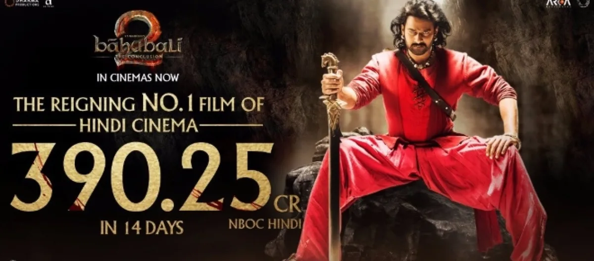 Bahubali 2 two weeks Hindi collection: - S S Rajamouli's Bahubali 2 surpassed Aamir Khan's 'Dangal' lifetime collections of Rs 387.5 crores by minting Rs 390.25 crores nett in its 14 days run. The film now emerges as the new Industry hit in Bollywood markets. Telugu films hardly have any market in North India but Prabhas's fantasy drama 'Baahubali: The Conclusion' changed the game and proved south Indian films stamina to the Bollywood.
