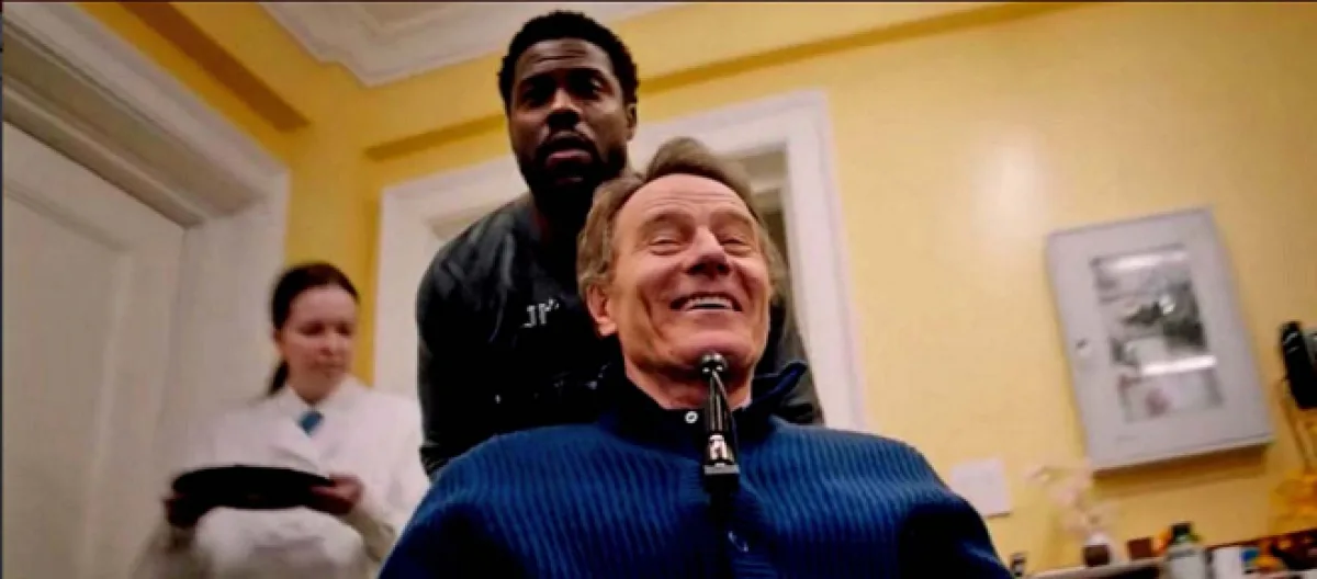 In another scene, Hart’s character tells Cranston’s character that he can have any woman he wants. He points to a woman “with all the Botox,” saying she would be perfect for him, as he can’t move his body, and she is unable to move her face.