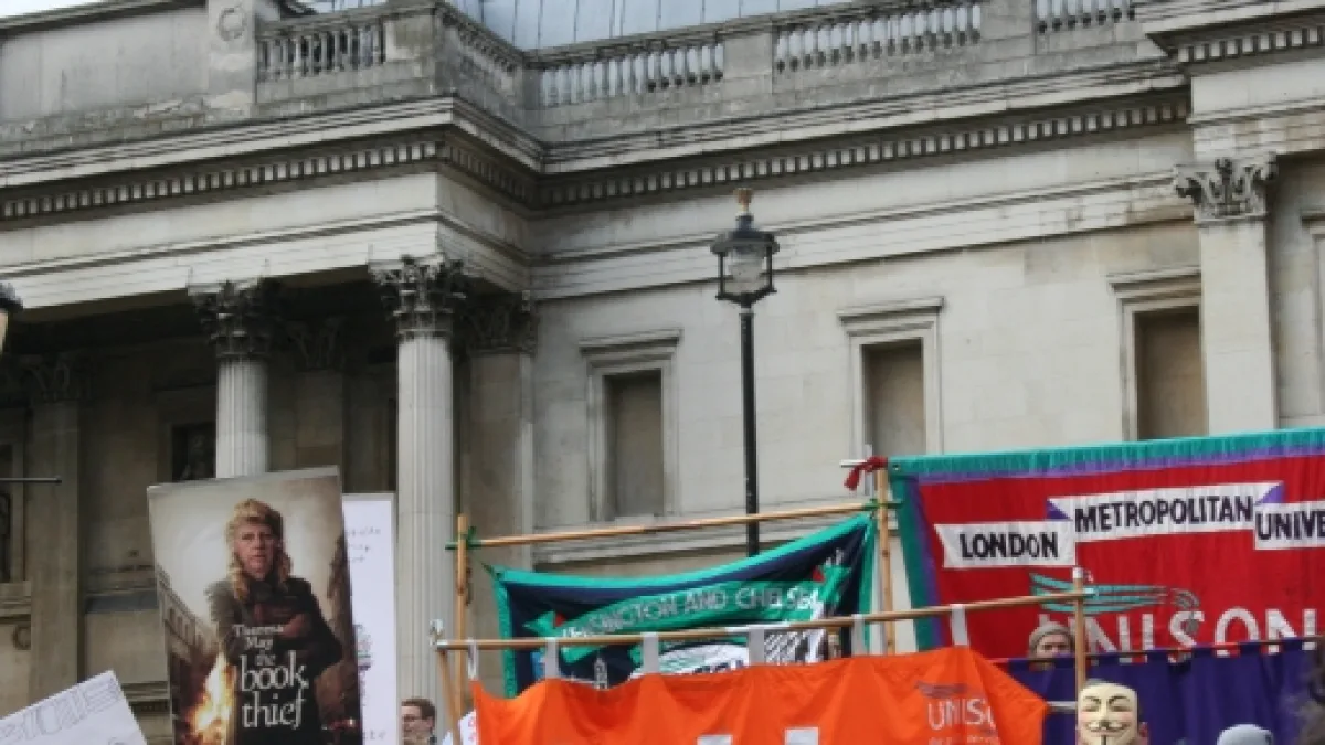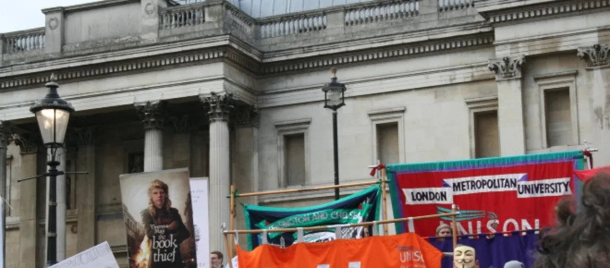 On Guy Fawkes Day, the 5th of November - a day of historical precedence for challenging the government - public service unions joined leading authors, librarians and gallery staff to demonstrate against closures and privatisation of libraries, galleries and museums. The march - which began at the British Museum and ended in a rally at Trafalgar Square - was co-organised by the umbrella campaign Show Culture Some Love to make a plea against the continued erosion of cultural services.