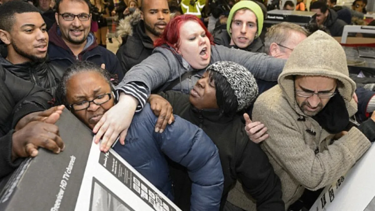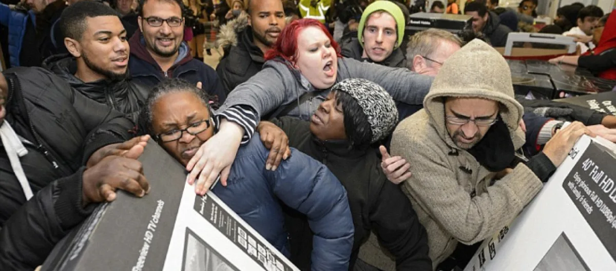 Far from spreading seasonal goodwill, Black Friday brings out the worst in people. There's now even a "Black Friday Death Count" website. 10 deaths and 105 injuries since 2006 (stampedes, shootings etc). A fairly shocking statistic from a seemingly innocent holiday tradition.