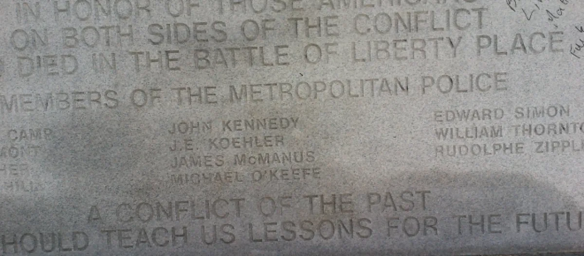 In 1874, a rebellion happened in New Orleans against the Governor and Lt. Governor, more than twenty died in the fighting. Eleven were police officers, who died defending an African-American Lt. Gov. C.C. Antoine.