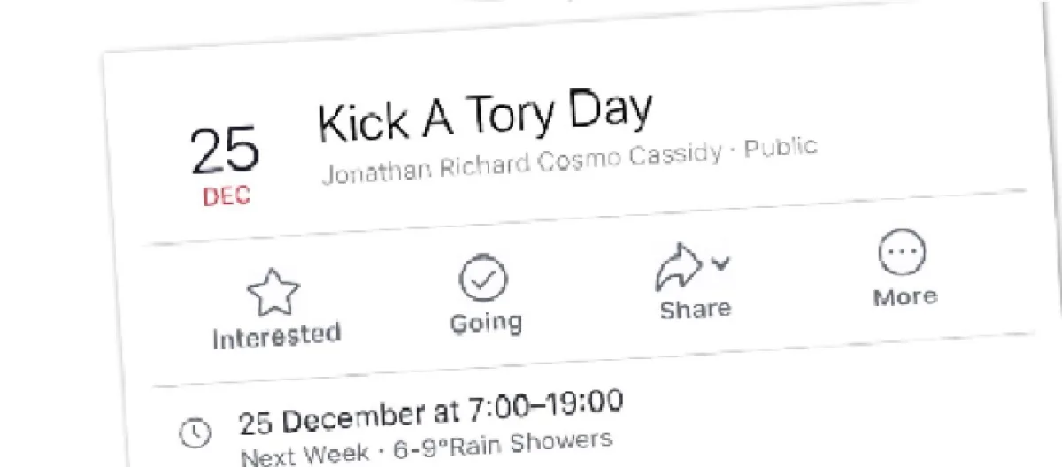 The controversial event, which has caused quite a stir on social media, is available for people to attend on Facebook. It is scheduled for Christmas Day and is due to be held at Westminster.