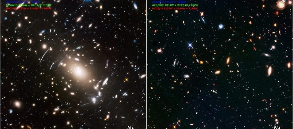 In the latest Hubble image, which could be epitomized as that of a new frontier shows how the distant light from a number of galaxies is warped and distorted by another less distant object - the galaxy cluster Abell S1063.