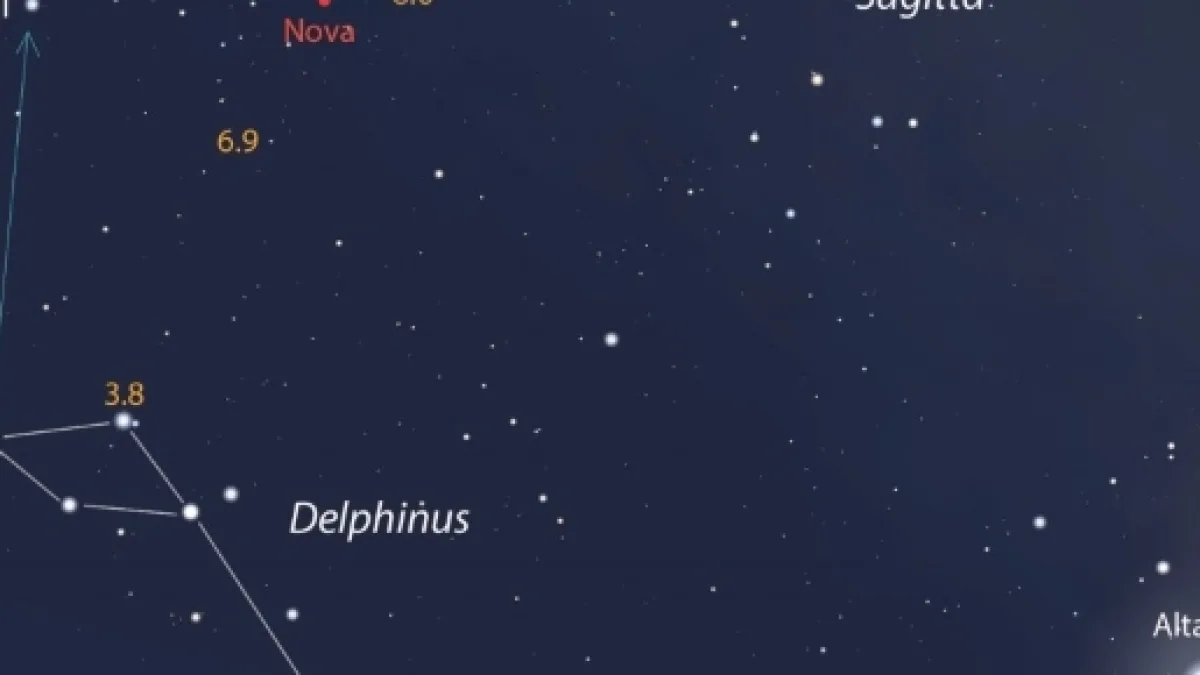 This is a bright nova located in the direction of the constellation Delphinus. It was discovered on august 14, 2013. It had a magnitude of 6.8 at the time of its discovery and changed to magnitude 4.3 two days later. A nova is generated when a white dwarf star accrues matter from a companion star in a binary system. This nova is the first that is known to synthesize lithium, which was observed in the dust blown out of the nova, providing the first evidence of the supply of this element to the interstellar medium.