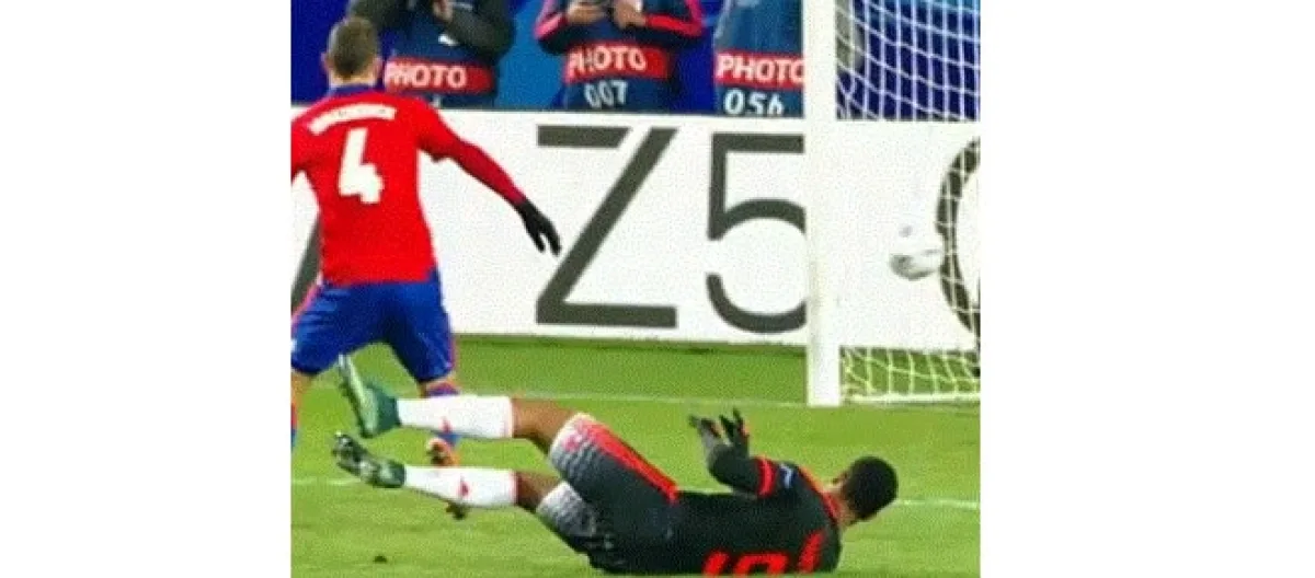 CSKA were surprisingly good. They sat back and allowed United to dominate possession in the middle third of the pitch, striking on the counter attack when the opportunity arose. In the 13th minute they were awarded a penalty when Martial handled in the box.