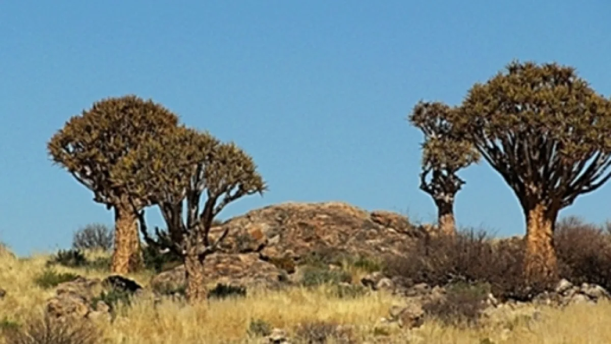 The camp was plain and unadorned but the austerity of it seemed to fit in with the simple fact that here was a desert. The uncluttered countryside did not need adornments to make it attractive. It had its very own desolate beauty. We ambled through the quiver trees. They are a type of aloe, which looked remarkably similar to the New Zealand Cabbage Trees we had seen on the west coast. The trees stood clustered round about amongst balancing rocks in dolomite country.