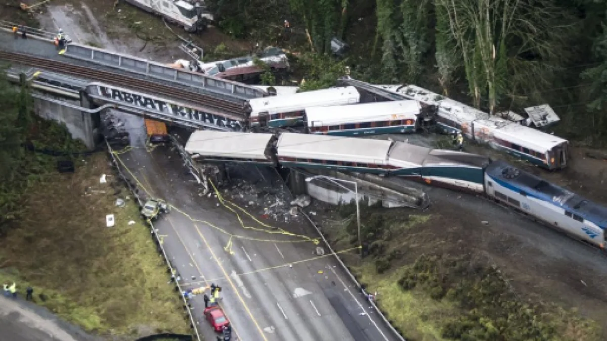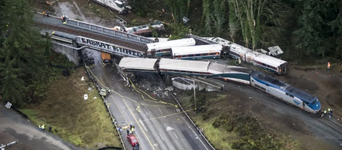 An Amtrak train riding down a new high speed rail route in Washington state has come off its tracks, flown off the side of a bridge and rained 13 train carriages down on the Interstate 5 highway, like a scene from a “Final Destination” movie. Following the crash, considering that the train contained 77 passengers and seven crew members and five vehicles down on the highway below were struck by falling cars, more than 100 people have been taken to hospital, and at least six people have been left dead by the incident.