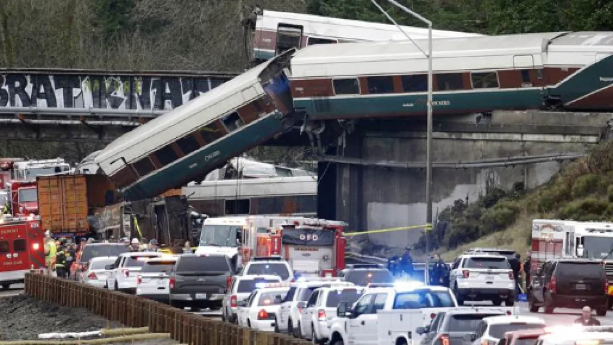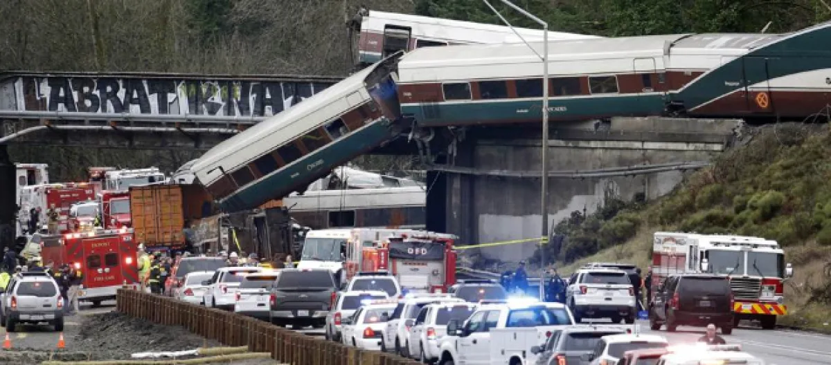 As 13 train carriages rained down from above onto the Interstate 5 highway, luckily no motorists were killed, although five vehicles on the highway were struck by train cars. The whole thing took place just next to Tacoma in Washington state, which is approximately 40 miles south of Seattle, the city that gave us Frasier Crane and Nirvana.