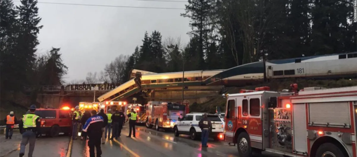 At least six people have been killed and more than 100 people have been injured by an Amtrak train that came off its rails in Washington state. It was travelling down a brand new high speed rail route that was only opened yesterday. This was its maiden voyage. It didn’t exactly go as planned. Going over a bridge over the Interstate 5, 13 out of the 14 carriages of the Amtrak train came off the rails and flew off the bridge, raining down on the cars below.